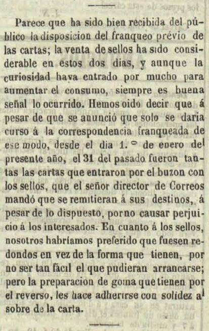 Llegamos al final de 1849. El 31 de diciembre, un día antes de empezar el uso del sello, publican otra crítica abogando por el uso de los sobres franqueados al estilo de los Mulready ingleses. Agoreros no faltaron. Menudos Genios.
