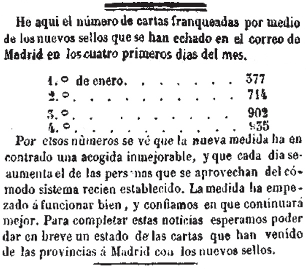 Los primeros sellos en España se empezaron a vender el domingo 30 de diciembre de 1849 en Madrid.