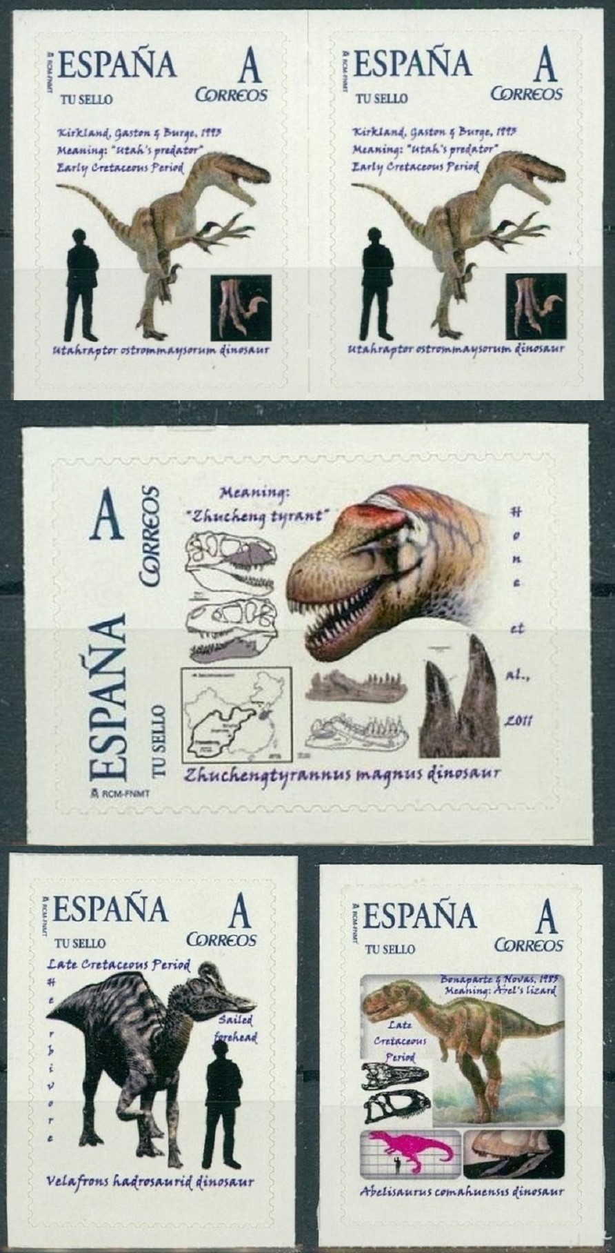 Si ya hubieran sido puestos, decídmelo y los quito. Poniendo Dinosaurios en el Buscador, aparecen otros pero no estos… Para cada sello, de los que ofrezco en el primer panel juntos, no hay mejor resolución. Nada más sé de estos ejemplares, como no sea apuntar que se vendían en un portal famoso a precio de oro, e imagino que habrá algunos más...