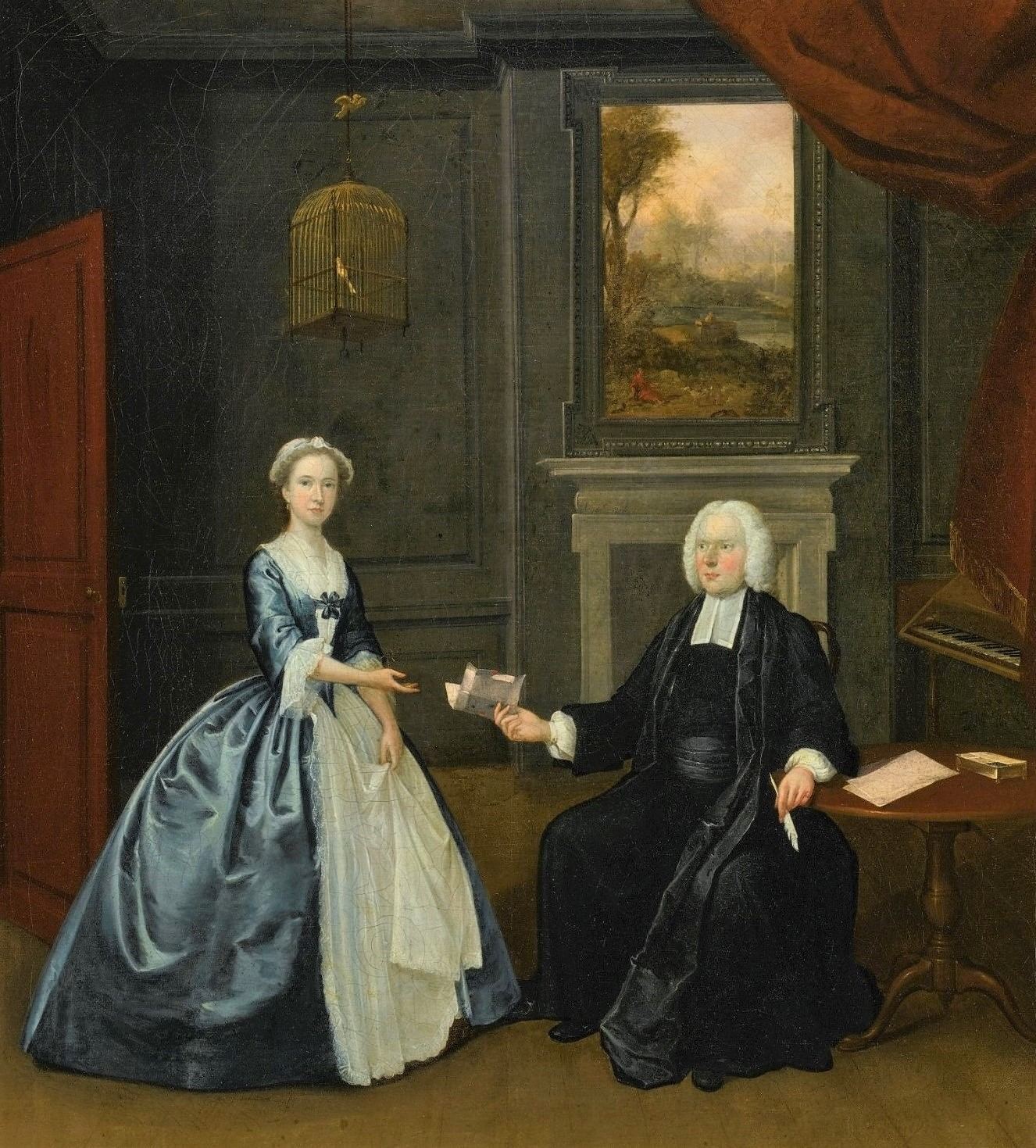Retrato del reverendo  Thomas D'Oyly con su esposa (1744), de Arthur Devis. Óleo sobre lienzo, 76.2 x 63.5 cm