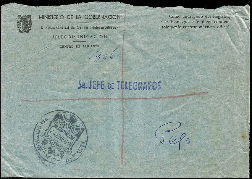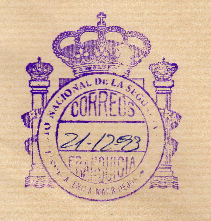 Mientras se arreglaba el local, se trasladó la oficina al cercano pueblo de La Pobla Llarga (notad que al no existir franquicia, hacia las veces de esta un sello que se había podido rescatar)