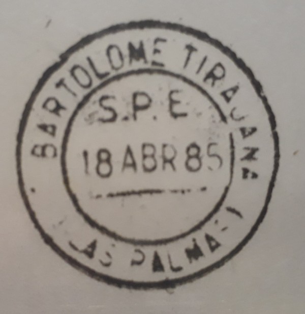S.P.E. / 26.MAY.83 / MAZO / STA CRUZ DE TENERIFE (Esta marca estaba catalogada pero mejoramos calidad de estampación)