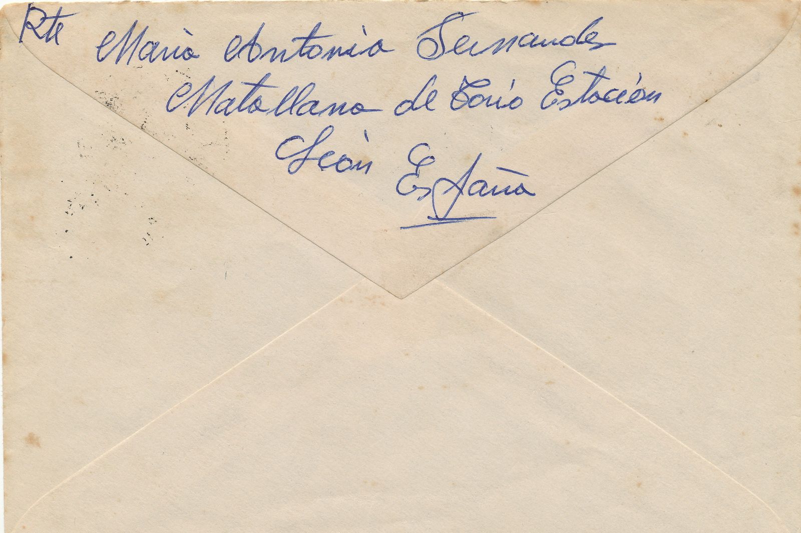 Y muestro también el anverso y reverso de la carta donde va estampado para que se vea que se depositó en la Estación de Matallana de Torío, seguramente al paso del tren.
