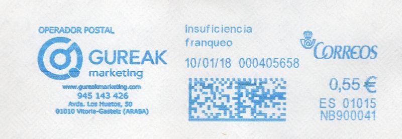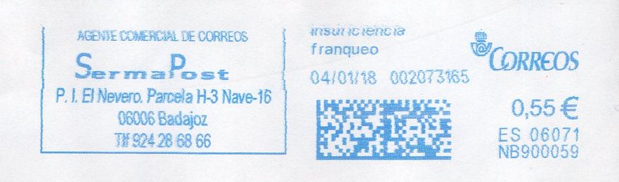 Franqueo digital. Azul. PB700560. 28053. 2018-01-09. Publicorreo Óptimo Nacional. Nueva empresa.jpg