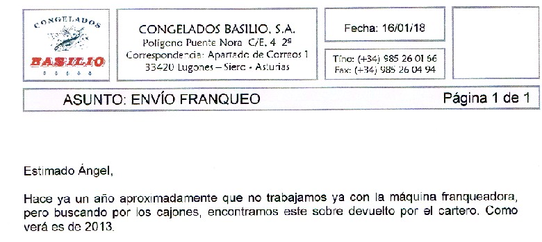 SANANGEL escribió: Este franqueo me lo enviaron desde la misma empresa dentro de otro sobre de franqueo pagado y ellos me dijeron lo de la baja