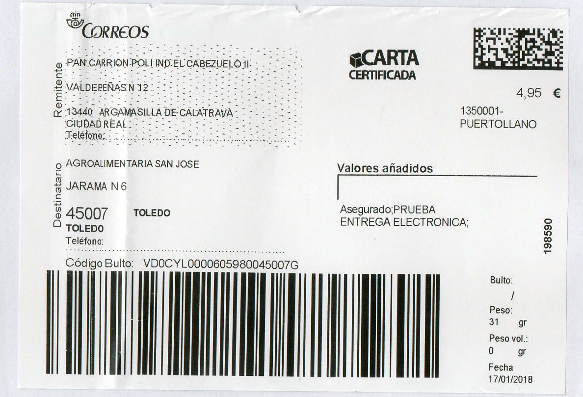 ETG 1350001-PUERTOLLANO / CARTA CERTIFICADA / 17-01-18