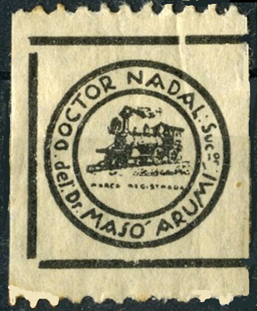 La primera es la de la Farmacia de DOCTOR NADAL, sucesor del Sr. MASÓ ARUMI, Rambla 121, con medidas 2 x 2,5 cm
