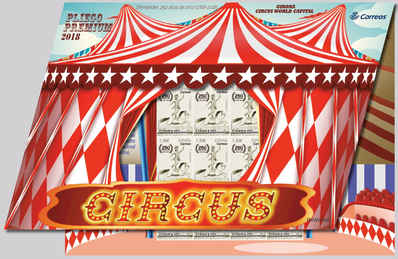 Dios mediante, el día 9 de febrero de 2018, dentro de la serie denominada «Efemérides», se emitirá un sello de correo conmemorativo de los «250 años de Circo (1768-2018). Girona Circus World Capital». La emisión se presenta en dos formatos, en pliegos de 25 sellos y en pliegos Premium de 16 sellos.