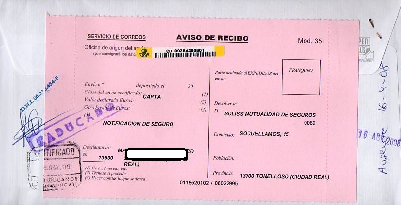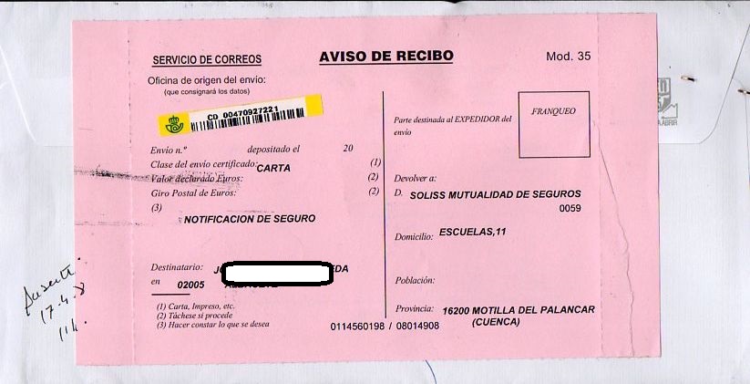En esta carta certificada, casi todas las marcas son a bolígrafo...