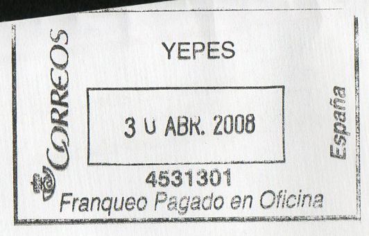 FPO AF-103 ALBACETE / OP / 16 ENE 2008 / 0200010 (letras OP más separadas)
