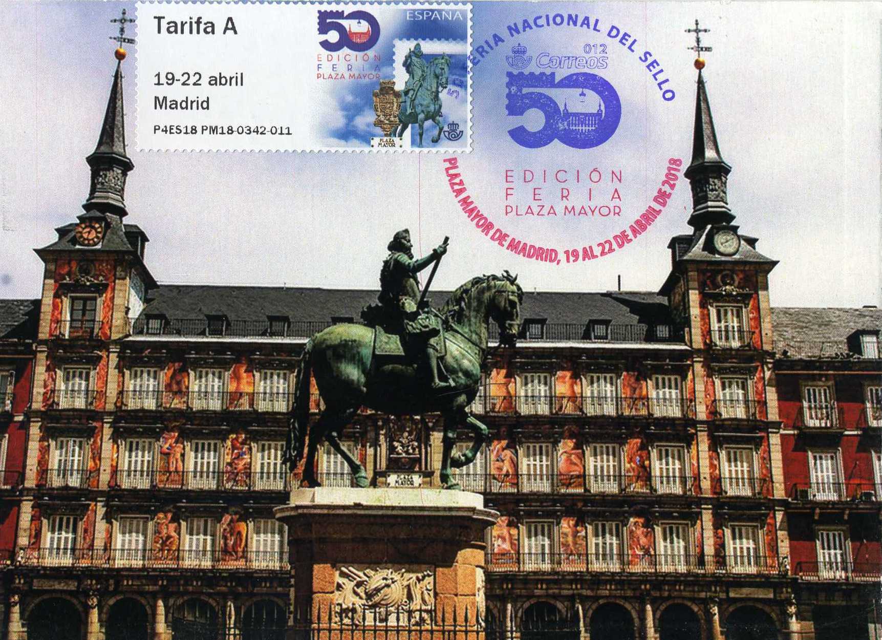 Modelo Plaza Mayor con matasello bicolor de la 50 Feria Nacional del Sello.