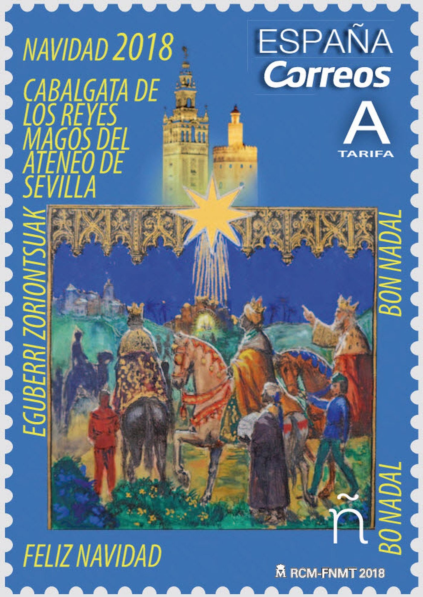 Dios mediante, el día 8 de octubre de 2018 se emitirá la tradicional serie de sellos de correo denominada «Navidad». Consta de dos sellos autoadhesivos denominados, respectivamente, «Paquete de árbol navideño» y «Cabalgata de los Reyes Magos del Ateneo de Sevilla».