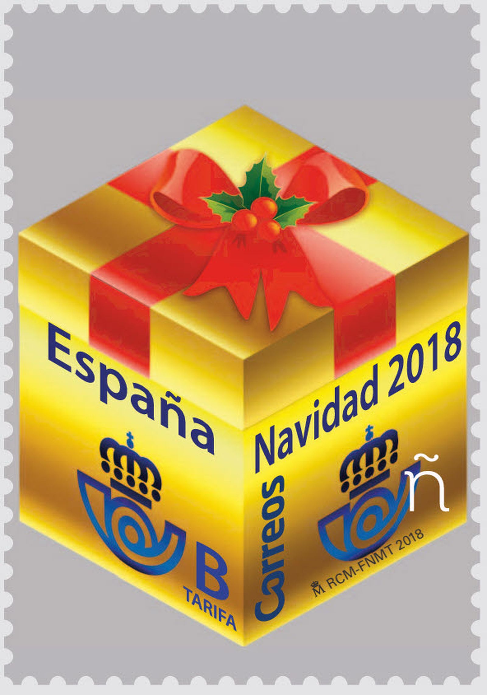 El segundo sello que emite Correos con motivo de la Navidad, representa un paquete de regalo característico de la Navidad, que también se podrá colocar en la Tarjeta Coleccionable de Navidad, con forma de árbol navideño que se inició en el 2016 y que finaliza con este sello.