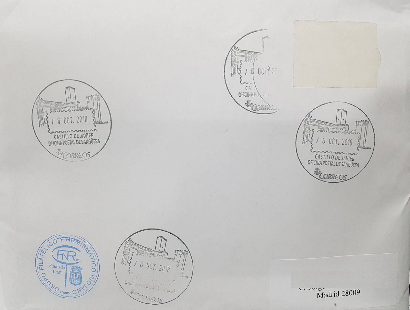 2018-09-28. 200 Aniversario nacimiento Cosme García Sáez. Carta de Logroño. Envío. Reverso. Baja.jpg
