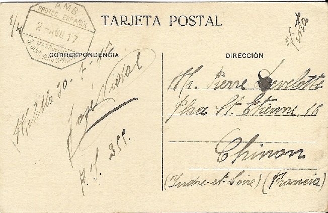 Parece raro que salga de Calaf, por el membrete comercial, si bien he considerado que en aquellos años (y en otras épocas) los agentes comerciales cogían los sobres de las fondas y los hoteles y luego echaban las cartas donde fuese, por lo que no necesariamente el remitente era la entidad del membrete comercial. O sí, vete a saber.