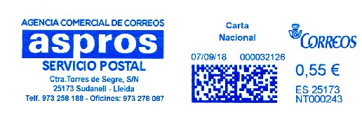Esta intimus se dio de alta en diciembre del 17 y su propietario era una empresa de mailing: manipula, empresa colaboradora de correos. Por algún motivo, y en poco tiempo, el propietario pasa a ser URBANPOST, Operador Postal, que es la que nos muestra Rafa. Muestro las dos improntas y las fechas mas tempranas que he podido conseguir.Azul443.jpgAzul443 (2).jpg