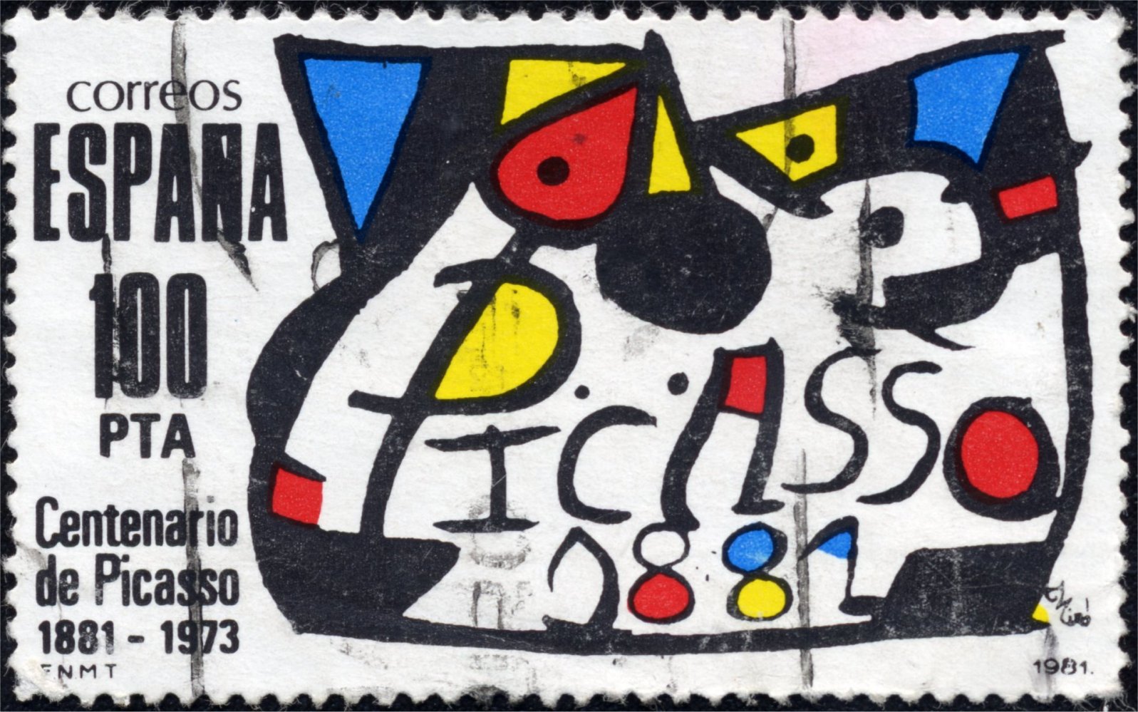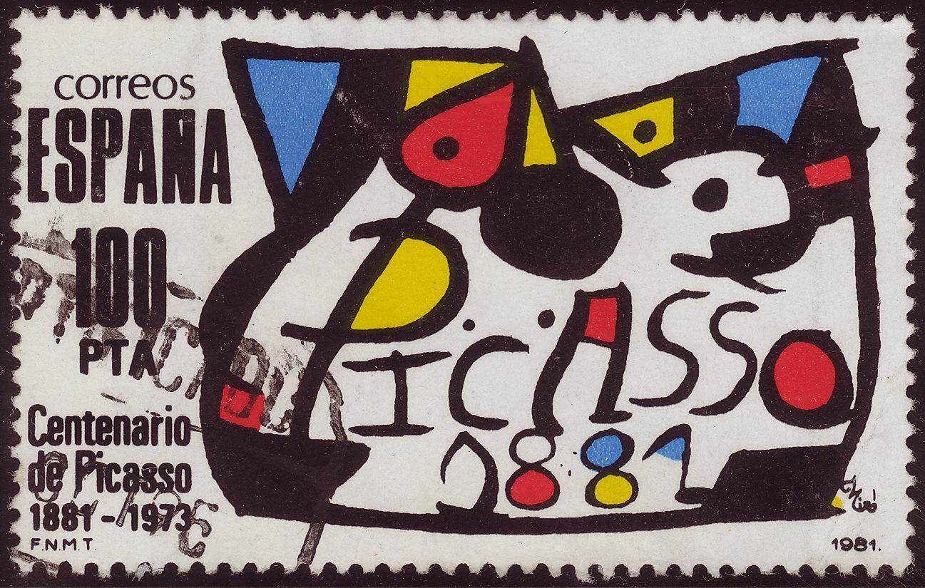 *el punto de la "i" de "Picasso" está unido a la "P"