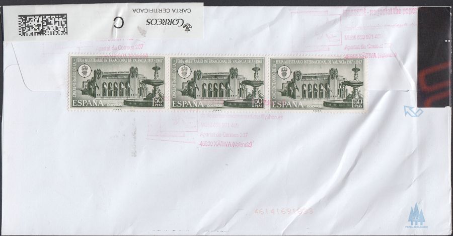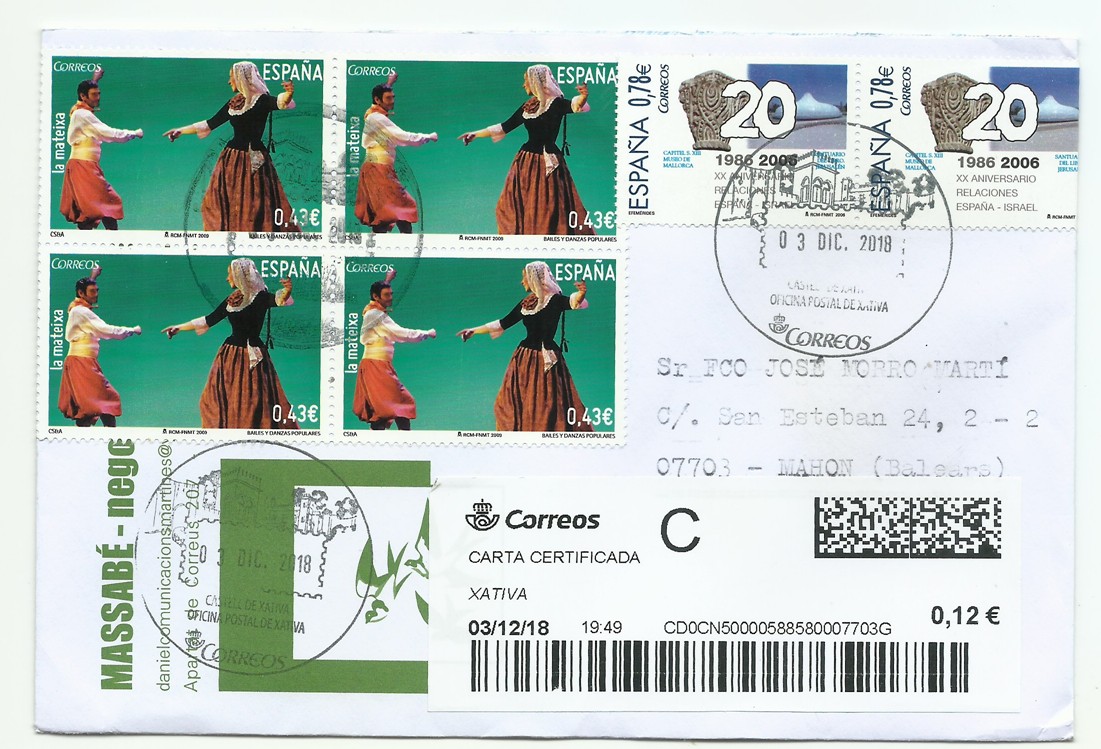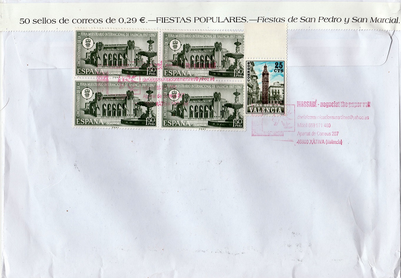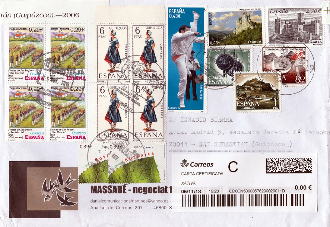 Te habrás fijado también, que todos los sellos del anverso tienen relación con tu provincia, y todos los del reverso con Valencia, la ciudad del vendedor. Además con matasellos turístico de Xátiva.