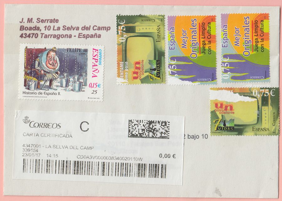Bonito sobre, muy empapelado, el total del facial son 6.01..... y viendo el tamaño del sobre no lo cuadro con ninguna tarifa del año pasado ¿¿??