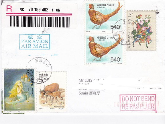 Una recibida desde China, sellos y marcas variadas