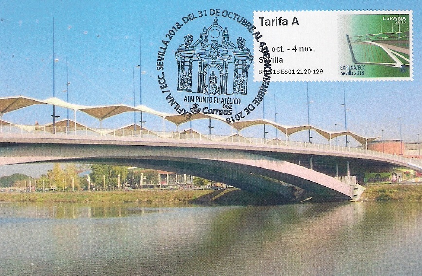 Modelo "Puentes", de la máquina inglesa ES01, matasello especial para el ATM PUNTO FILATÉLICO.