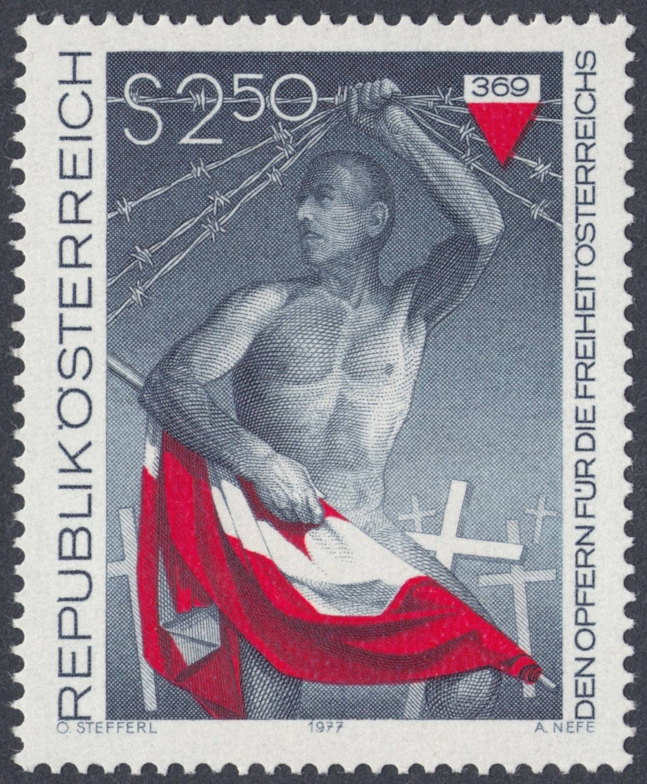 Hace unas páginas pusimos, en el largo serial dedicado a Otto Stefferl, el diseño de este gran sello austríaco de 1977 que homenajeó a las víctimas de la libertad.