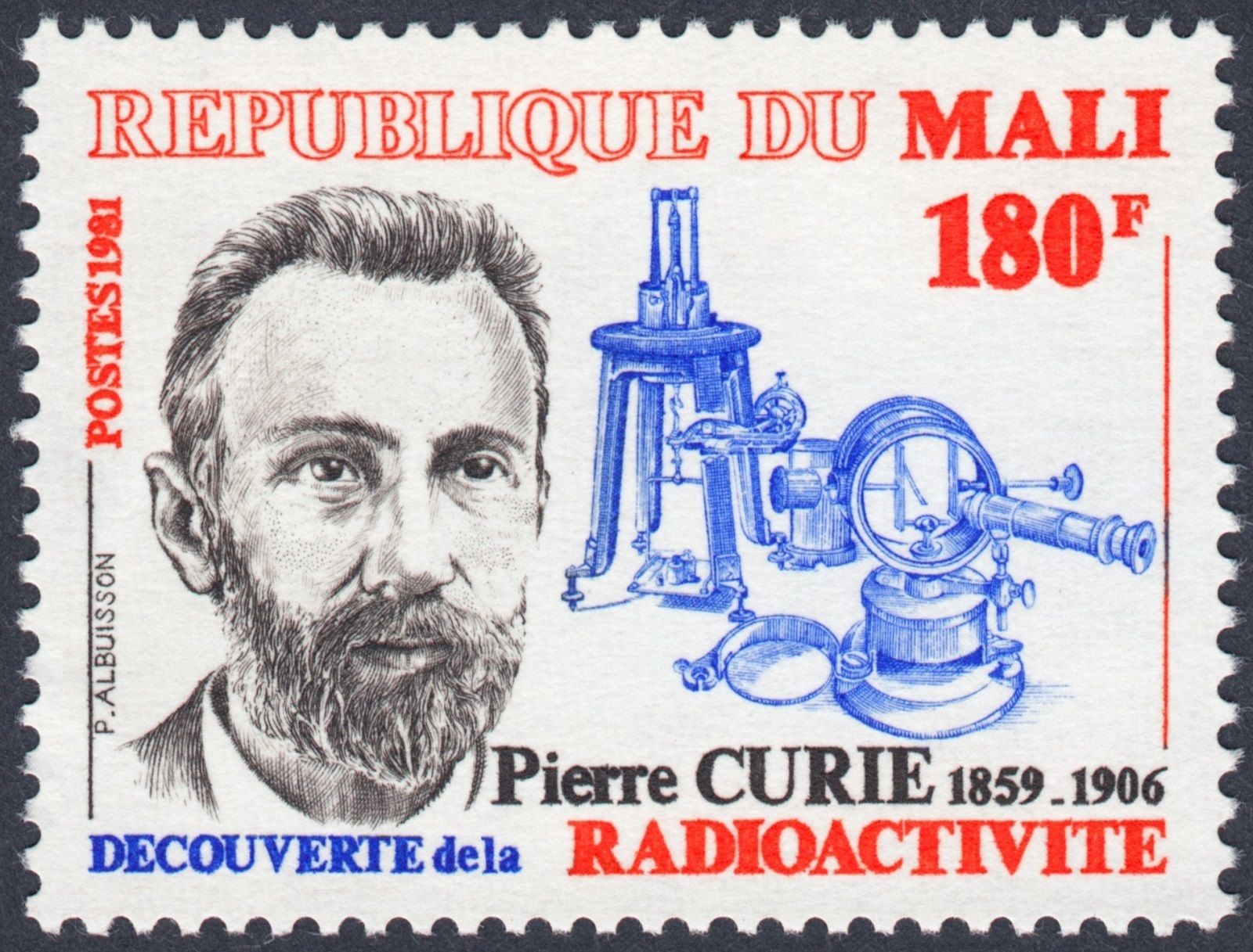 Y como fácilmente podemos ver, ya prometía con este su primer sello (Pierre Curie), emitido por Mali en 1981 y diseñado por el propio artista…