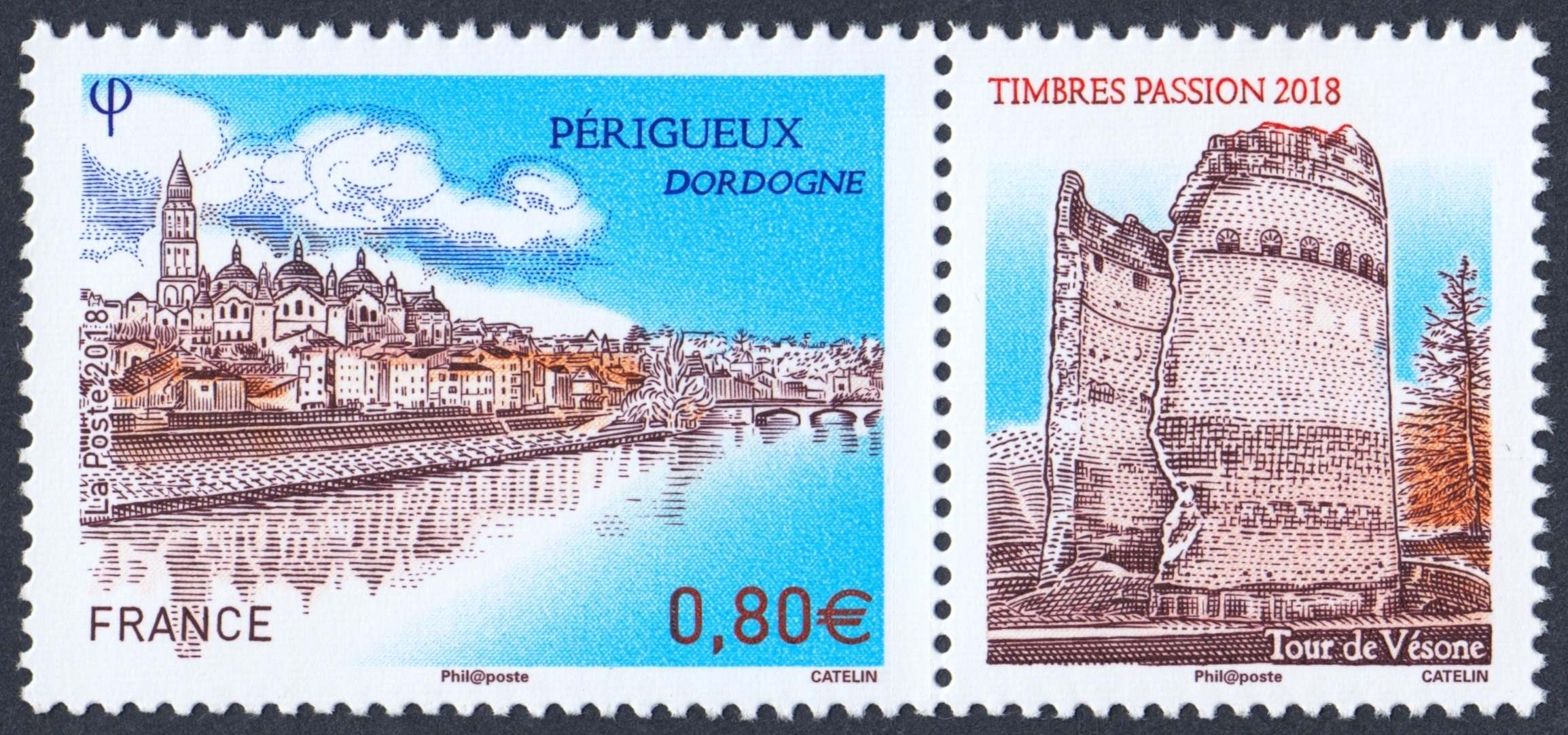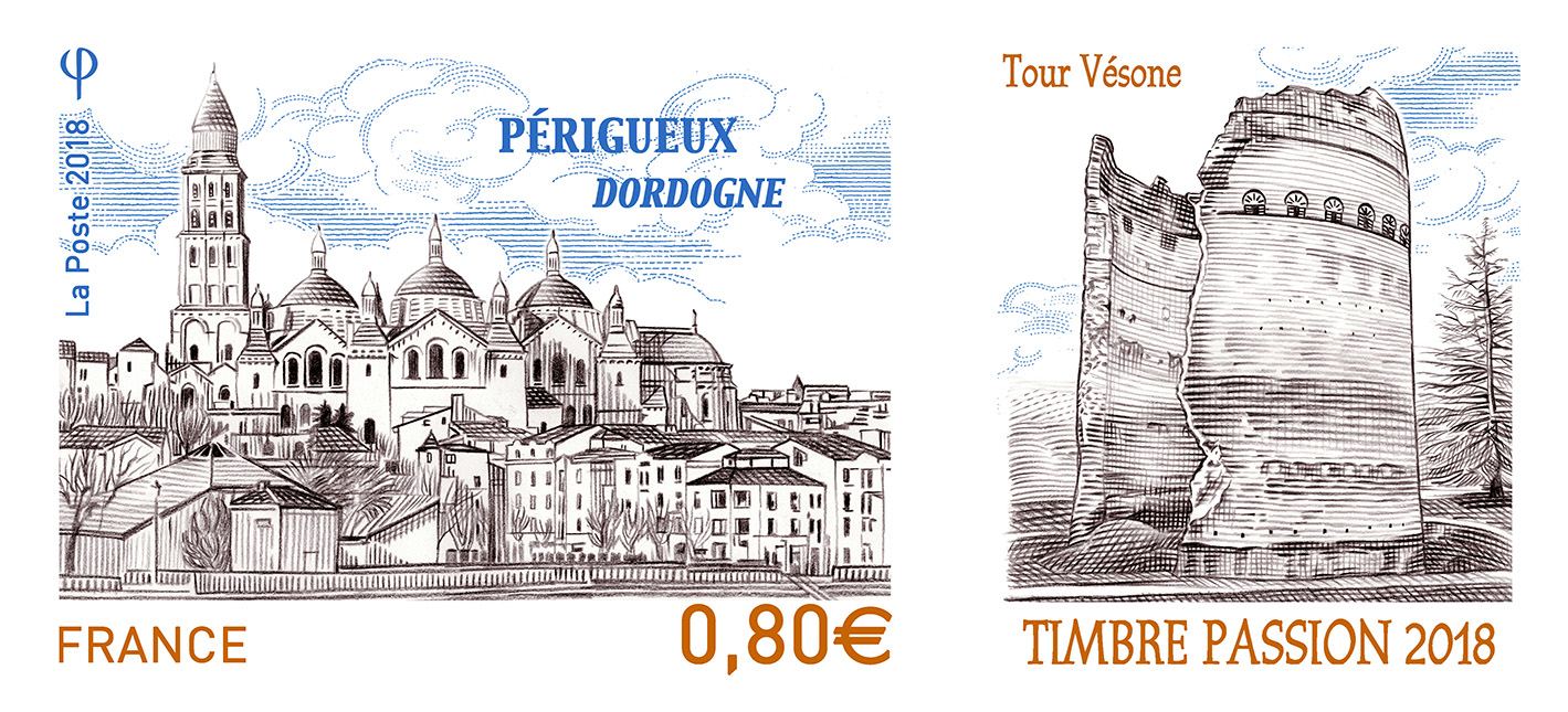Francia, 2018, Périgueux Dordogne. Sello diseñado y grabado por Elsa Catelin. Calcografía