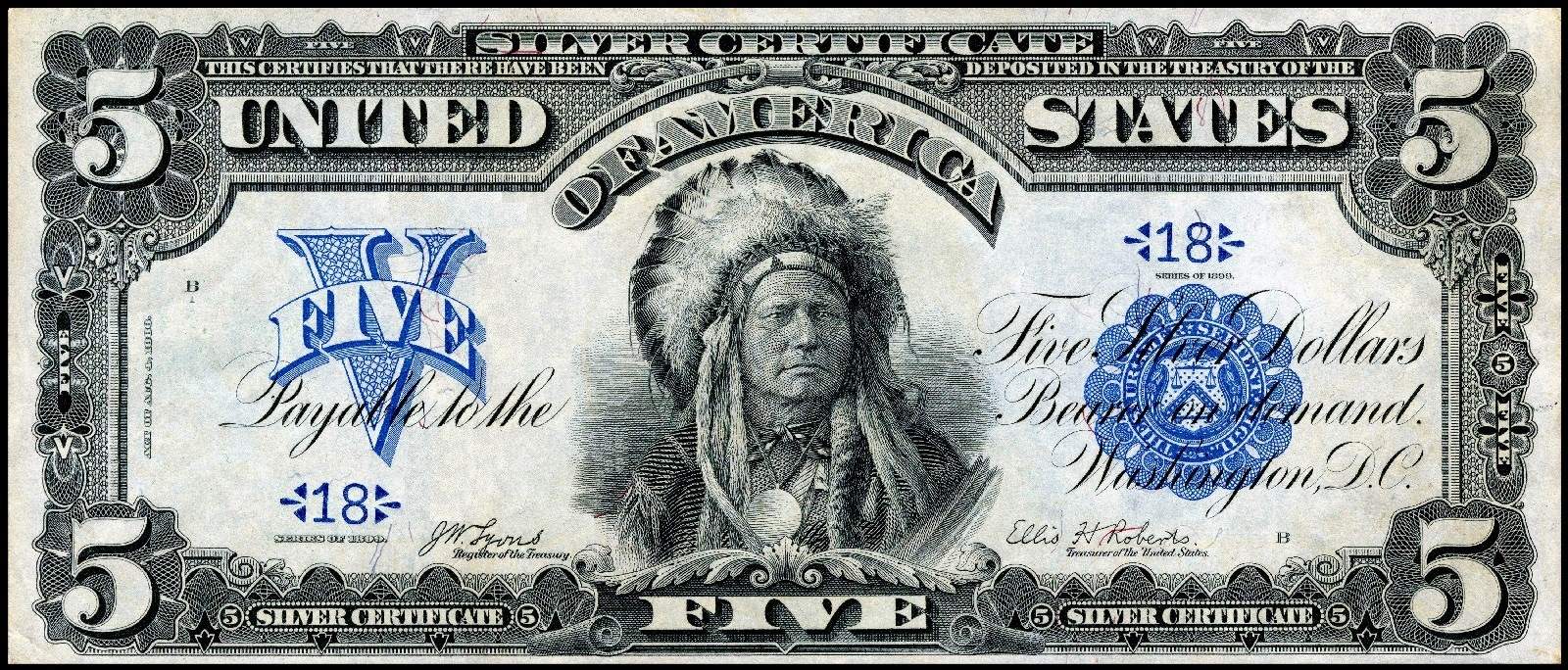 Billete norteamericano de 5 dólares de 1899