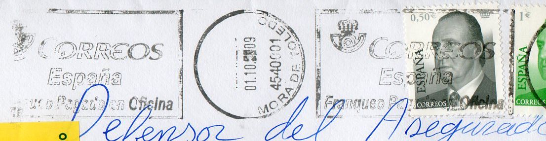 FPO AF-108 MORA DE TOLEDO / 01-10-09 / 4540001. El pueblo se llama Mora a secas, creo yo..