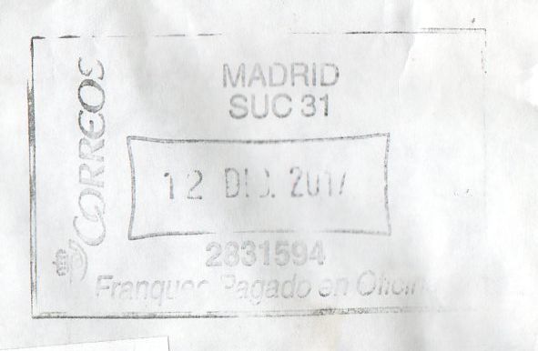 FPO AF-103 MADRID / SUC 31 / 2831594 / 12-12-17