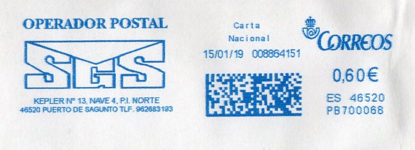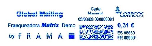 En un primer momento no estaba muy contento de que alfareva nos mostrara las altas y bajas de las digitales...y ahora estoy echando en falta la situación de estas máquinas de franquear :shock: En fin, la máquina PB700684 de la empresa consolidadora Maxipack supongo que se habrá dado de baja porque ahora franquea sus envíos con la NT000253 que reproduzco a continuación