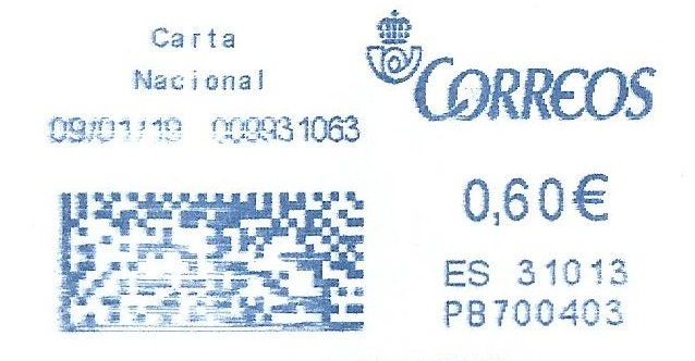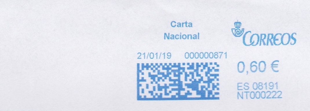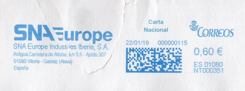 SNAEUROPE da la baja a su pitney por la Intimus NT000351 que ahora tiene el código de Admisión postal distinto, aunque está localizado en Vitoria. La impronta necesita reparación :mrgreen: ...cuanto trabajo doy al santo...