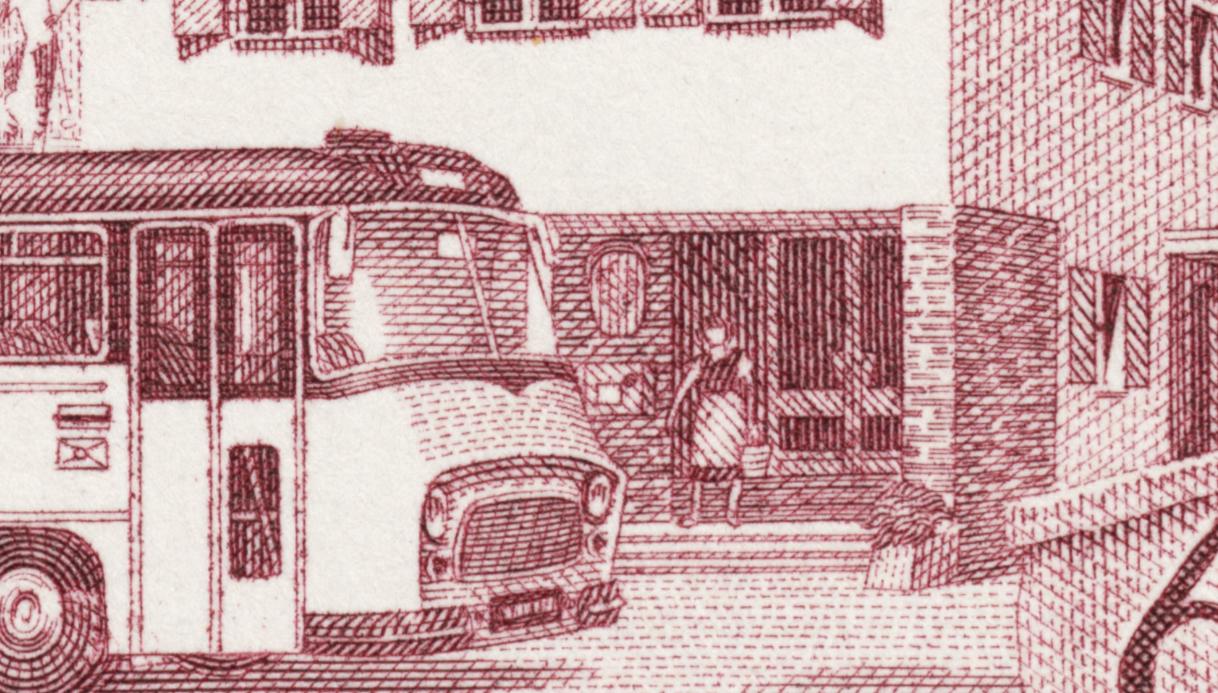 Austria en 1964, y grabado por Adalbert Pilch, con detalle del Buzón de Autobús.