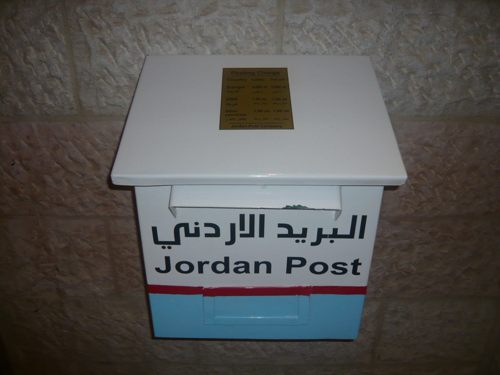 revisando fotos de viajes he encontrado esta de un buzón, con las tarifas postales en su parte superior, instalado en el hall del hotel Movenpick de Petra.