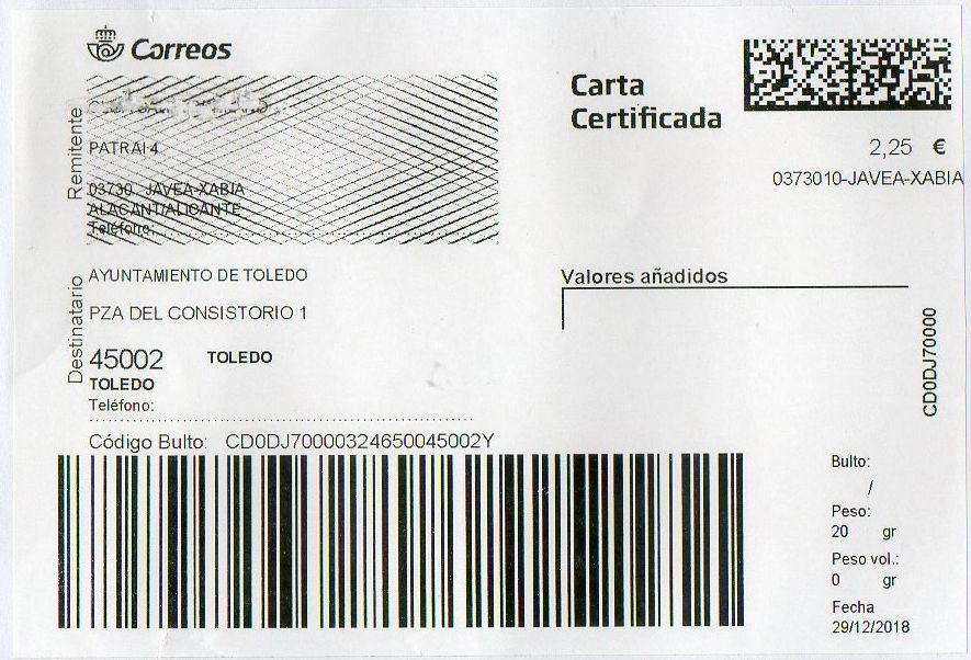 0373010-JAVEA-XABIA / CARTA CERTIFICADA / 29-12-18