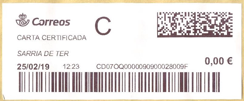 Etiqueta térmica digital. Nueva. Sarriá de Tero. Carta certificada. 2019-02-25. 12.23. 4,1x10. 0,00 euros.jpeg