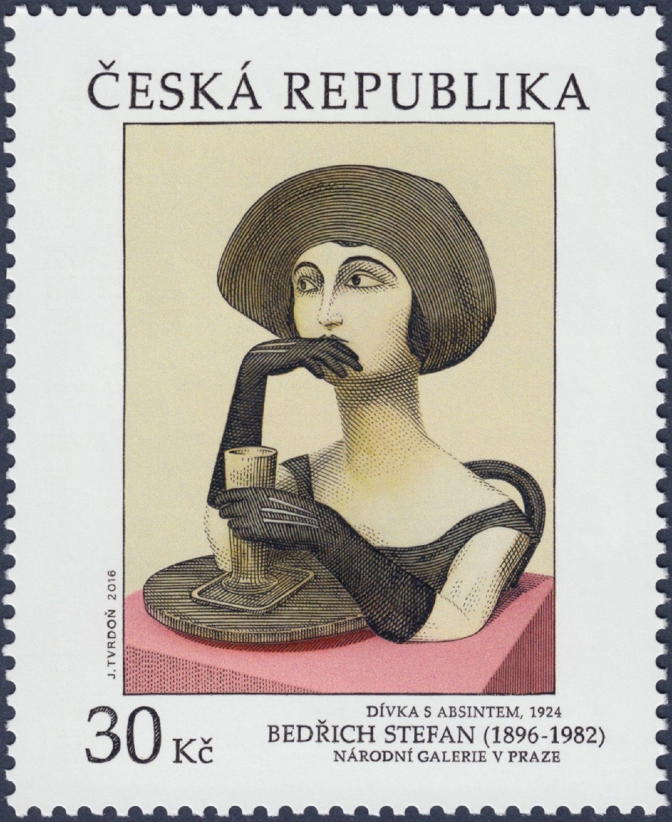 República Checa, 2016, Arte, "Chica con absenta”, de Bedřich Stefan. Sello diseñado y grabado por Jaroslav Tvrdoň. Calcografía y offset