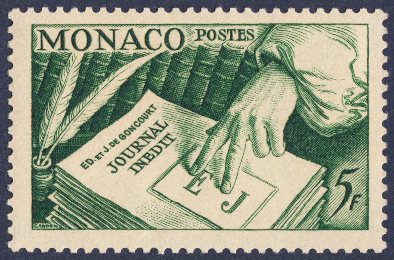 En 1953, el joven príncipe Rainiero III propuso celebrar la publicación en Mónaco de unos fragmentos inéditos de los diarios de los hermanos Goncourt, con un sello que honrara a los escritores.