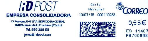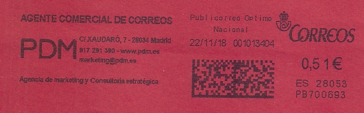 Aunque no lo indica, el ayuntamiento de Valencia también se encuentran entre sus clientes y es posible que por la etiquetilla con el RDPOST de valencia, dispongan de franqueadora también allí.