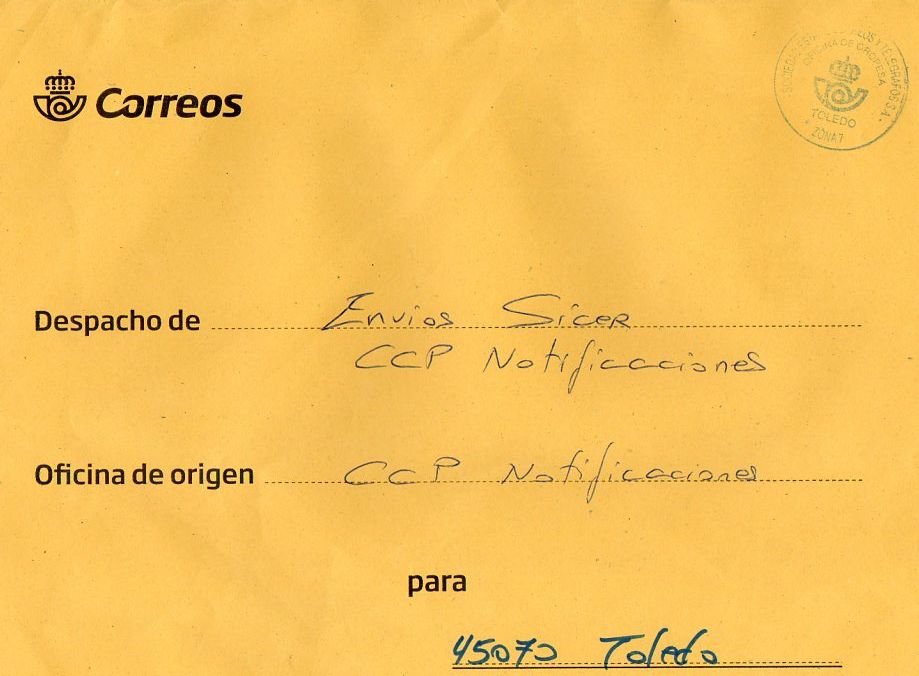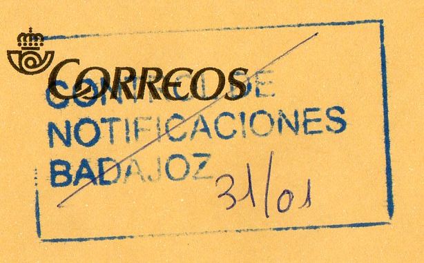 Creo que este tampón se puede considerar una marca administrativa entre los departamentos de control de notificaciones de Badajoz y Toledo