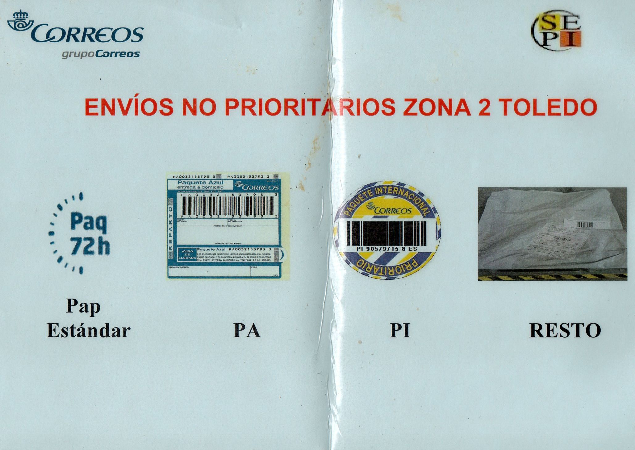 No parece que la foto que figura encima de la palabra RESTO sea la del correo ordinario normal, entendiendo tal como las cartas.