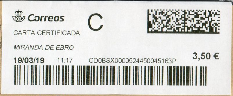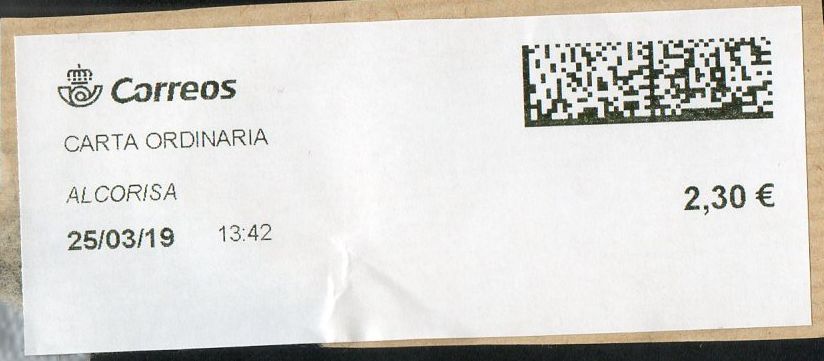 - Etiqueta térmica digital. Nueva. Madrid Suc 88. Carta ordinaria. 2019-04-12. 16.33. 4,2x10. 0,60 euros.jpeg (21.68 KiB) Visto 2707 veces