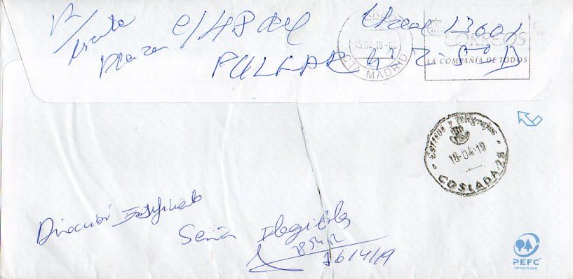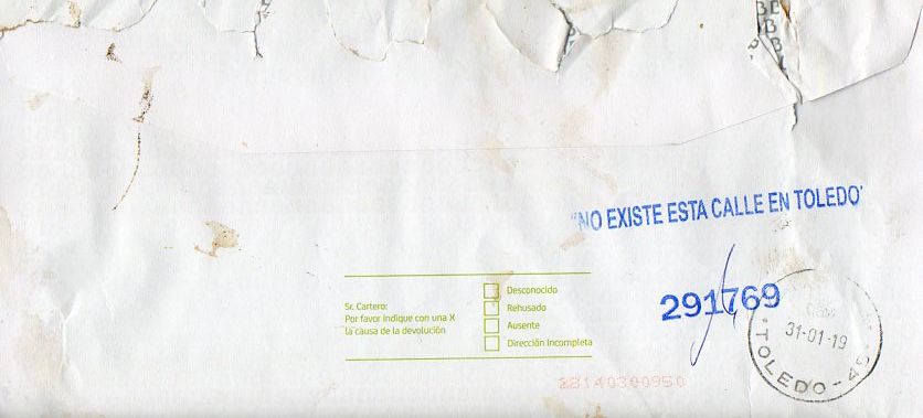 R/ emite / plaza / C/ H P del Pulgar nº 2 5º D / CReal 13601 (El CP de esa calle ciudadrealeña es en realidad el 13001).
