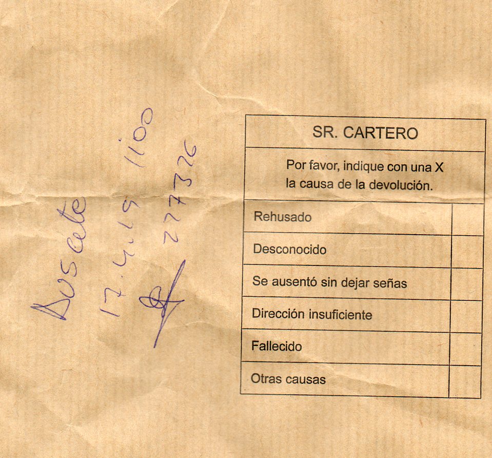 Re: Correo Devuelto, tipos, marcas, apuntes.