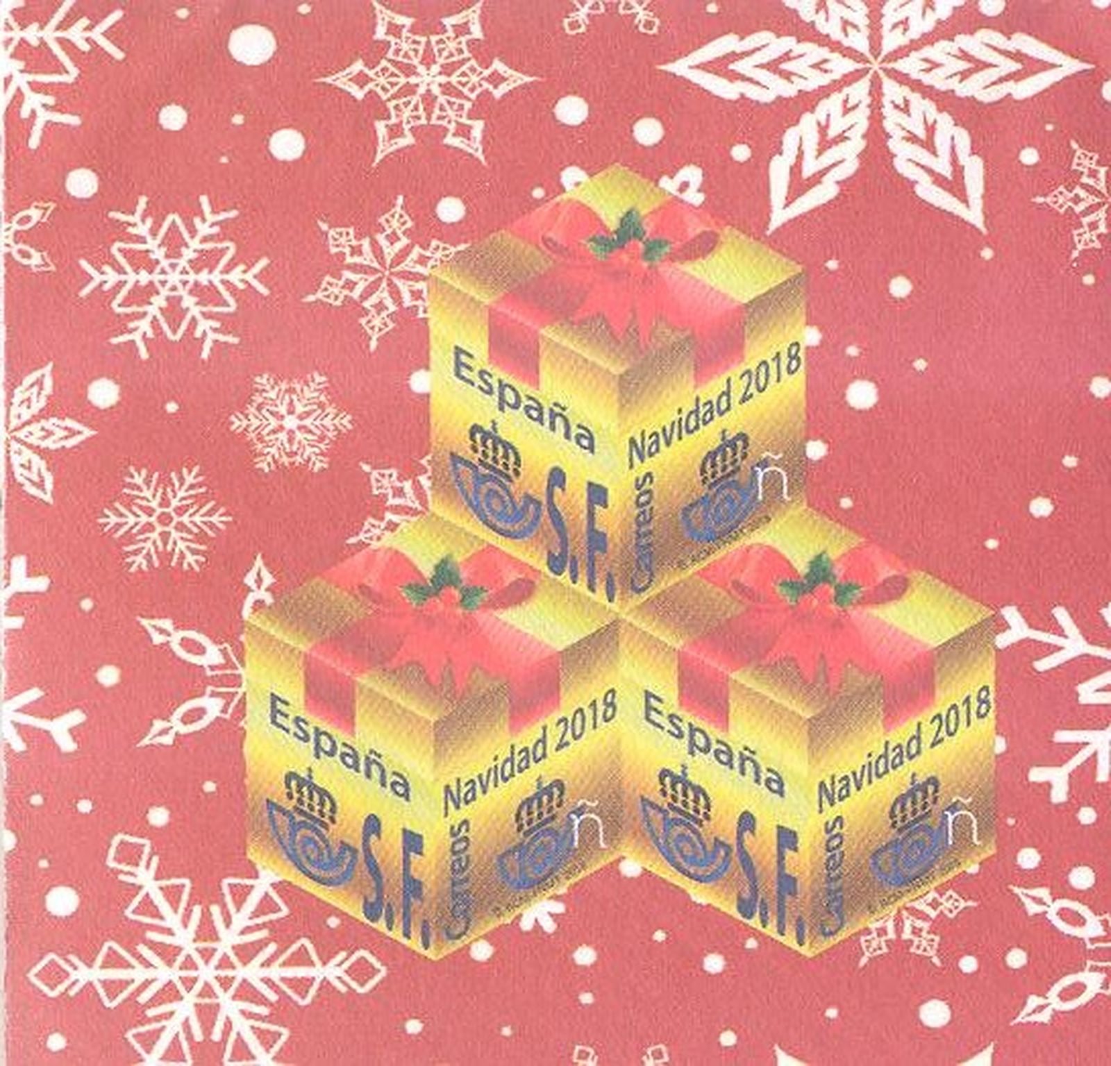 En este ocasión se publicita, de forma triple, el sello navideño (paquete de regalo) que se emitió el pasado 8 de octubre.