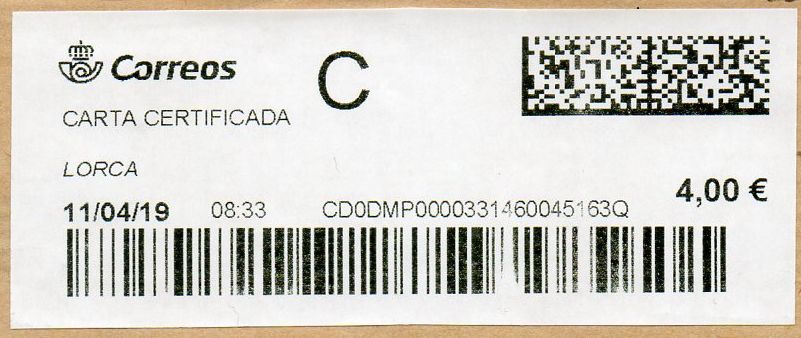 LORCA / CARTA CERTIFICADA / 11-04-19