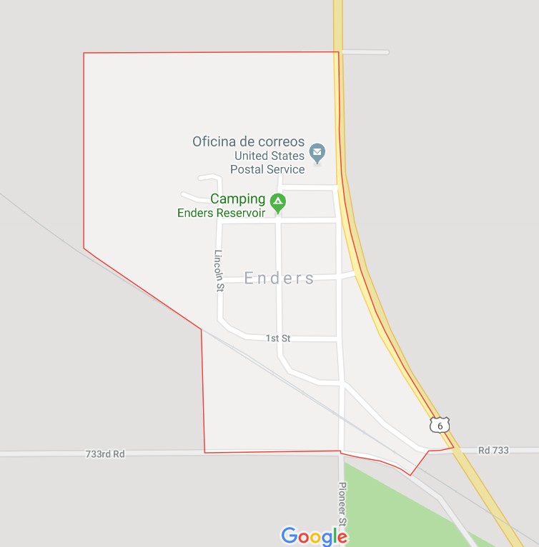 Para el segundo, tenía mis dudas con la apuesta del santo por ENDERS, lo he buscado en la Wiki y me encuentro con lo que los yanquis definen como un "lugar designado por el censo", con una población de 42 habitantes en el 2010, por lo que se acrecientan mucho mas mis dudas, ¿42 habitantes y con oficina de correos?, pero hete aquí que me voy a google maps y … veo una oficina de correos y como sigo incrédulo, voy a Google Eart y ¡BINGO!, tienen la oficina de correos, con su buzón exterior y todo, ¡increíble!. :shock: :shock: :shock: