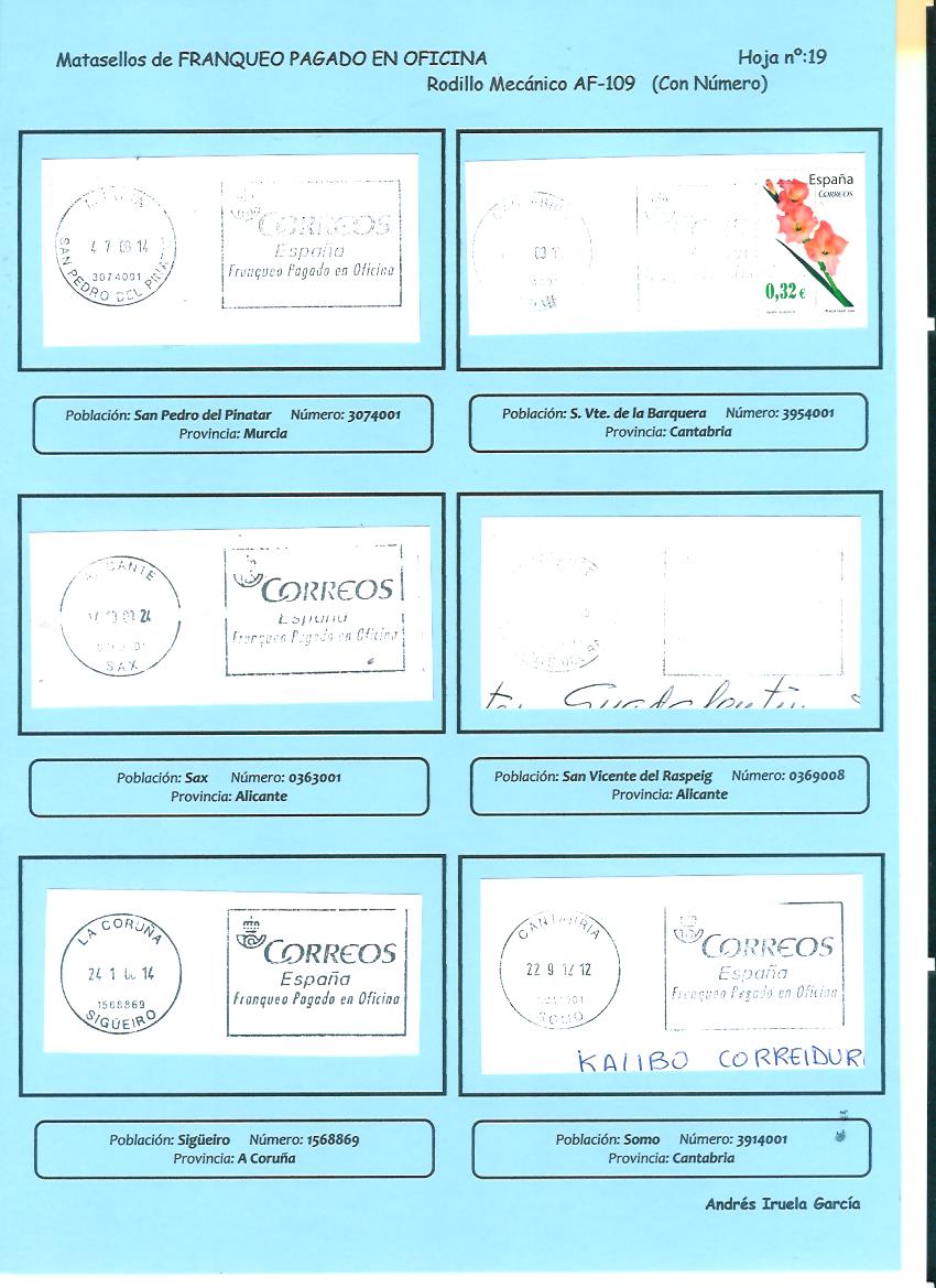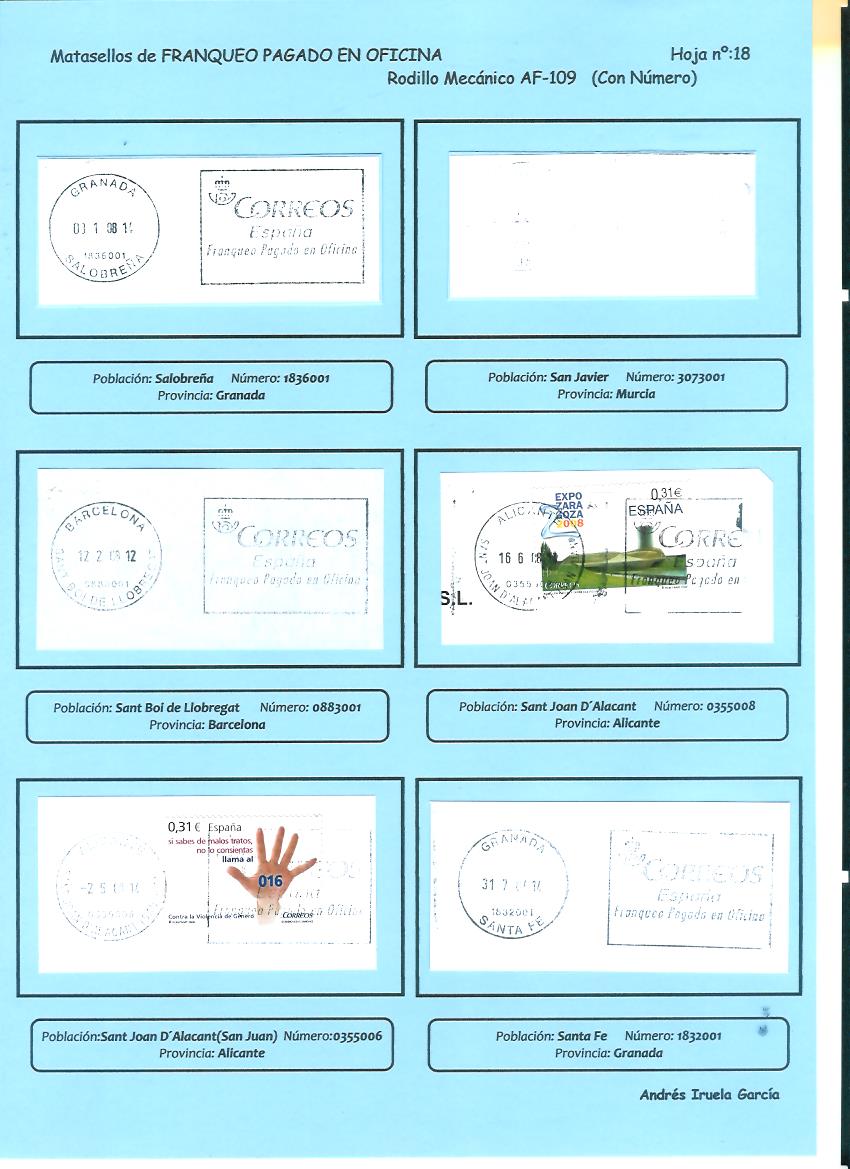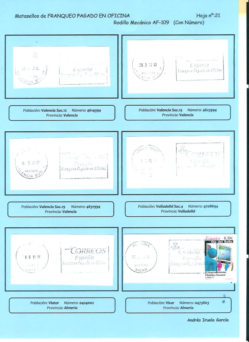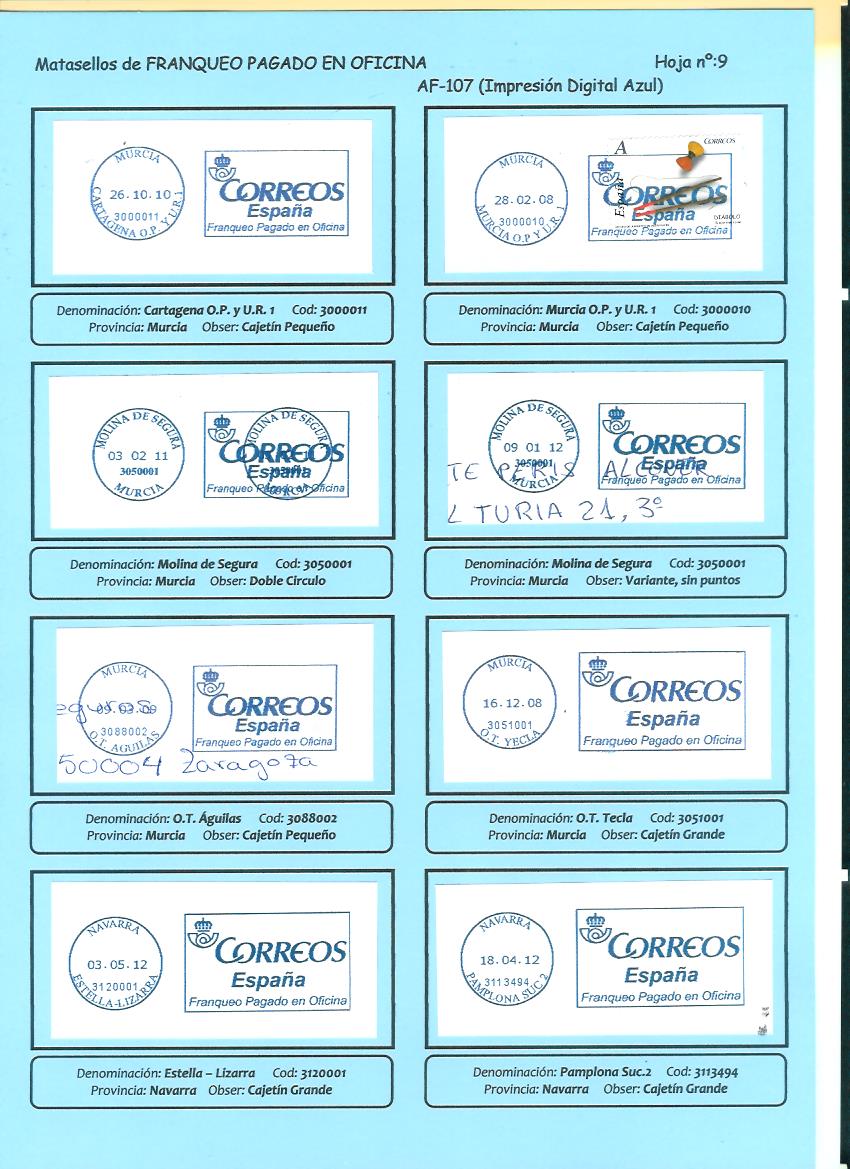 Cualquier ayuda es poca, sirva de ejemplo los AF-107 que has subido, he añadido 5 entradas al archivo que no tenía controladas. Con estas variantes y oficinas nuevas tengo controladas un total de 118 AF-107 diferentes.