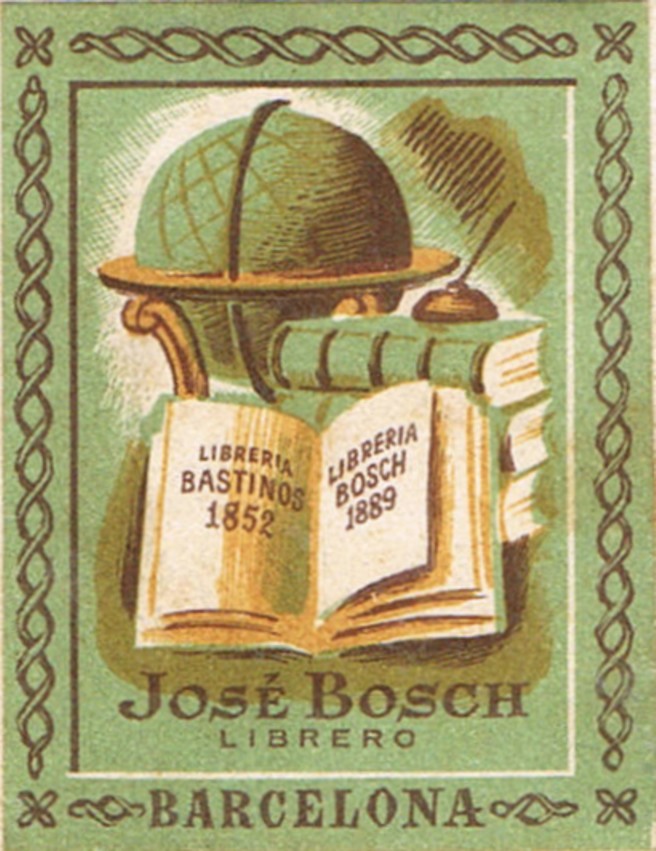 Libreria JOSE BOSCH, de Barcelona, de la que fue fundador en 1889, Agustin Bosch......antugua Bastinos,,,,,, La segunda generación quien la regentó fue Josep Bosch, que fue Preesidente del gremio de Libreros de Barcelona de 1949 a 1961.